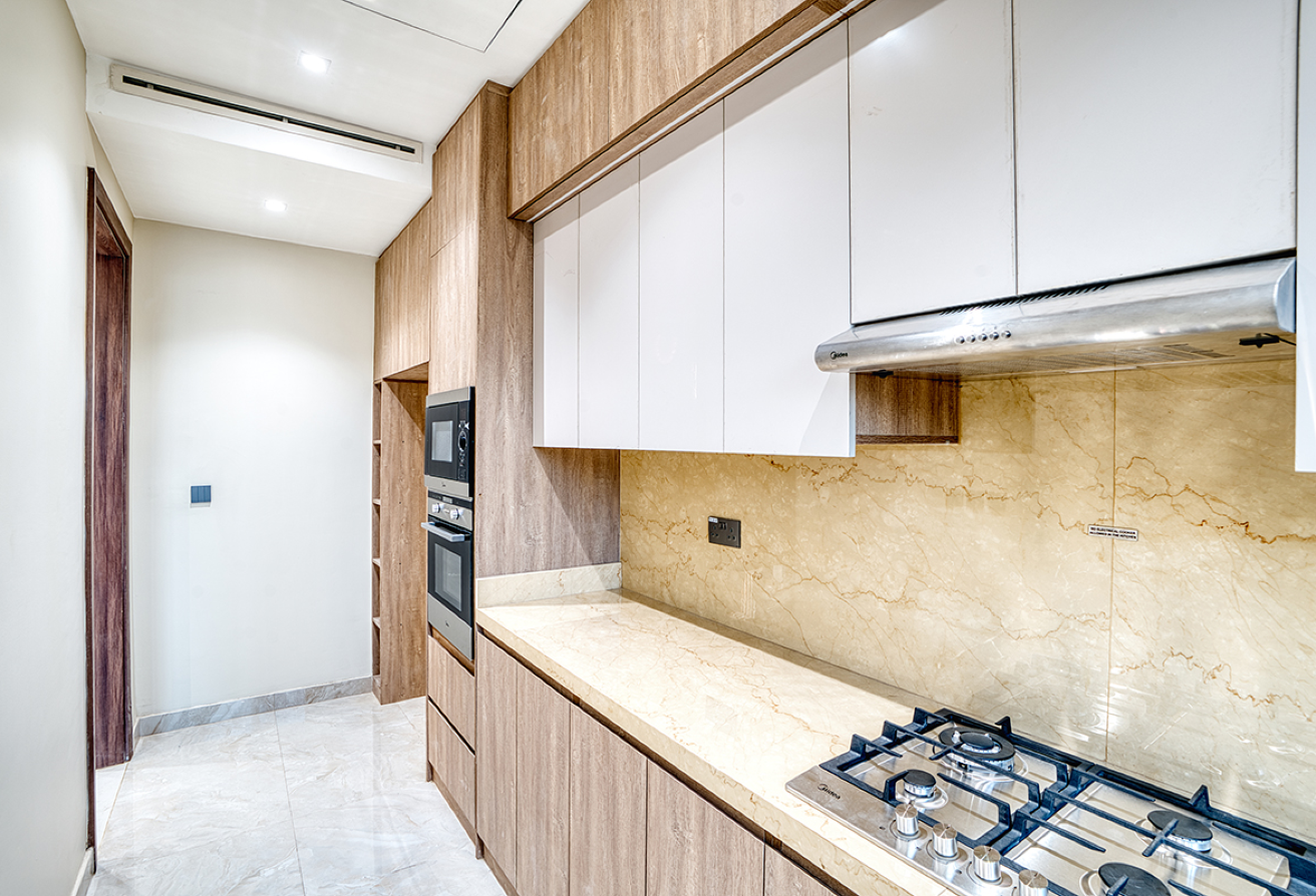 - Premium Kitchen: Hettich fittings with a wood finish, complemented by full-height storage for an elegant, organized space